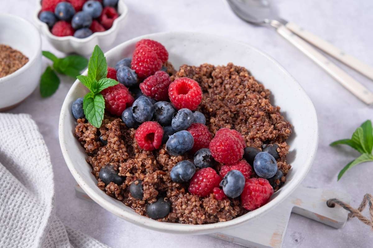 Mixed berries add vibrant color, natural sweetness, and a refreshing contrast to the warm quinoa. They are rich in fiber and antioxidants, which help slow glucose absorption and support overall metabolic health.