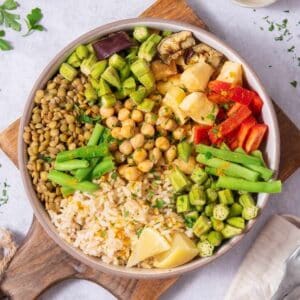 - 2 cups (404g) Brown Rice (cooked) - About ¾ of a 20-ounce bag of frozen brown rice