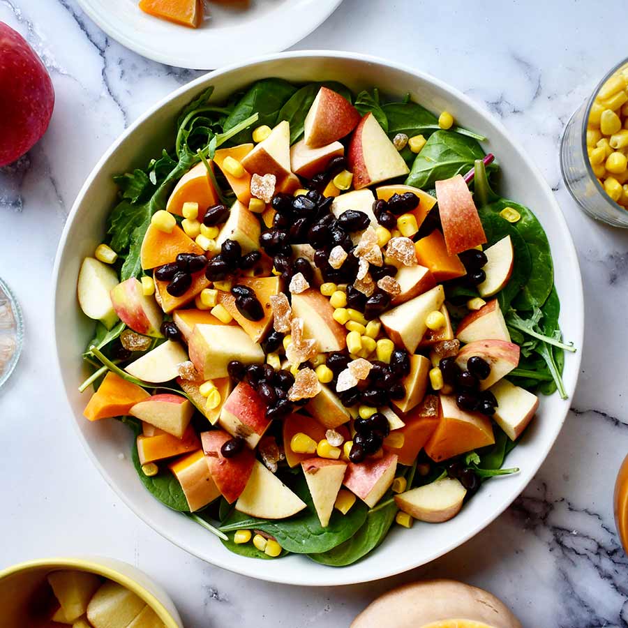 Layered Salad with Black Beans and Mango-Cucumber Salsa