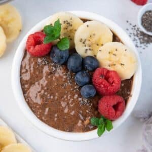 Chia pudding is one of those foods that tastes like a decadent dessert but is actually a nourishing meal. This one is extra rich with the combination of chocolate and