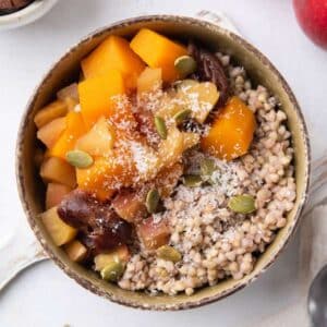 Take a break from the classic oatmeal breakfast and switch things up! This bowl gives you the perfect combination of sweet and savory, creamy and crunchy. After starting your day