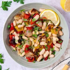 When the leaves start to change color and the weather turns cold, a warm and hearty white bean salad is the way to go. Raw vegetables are fresh and hydrating,